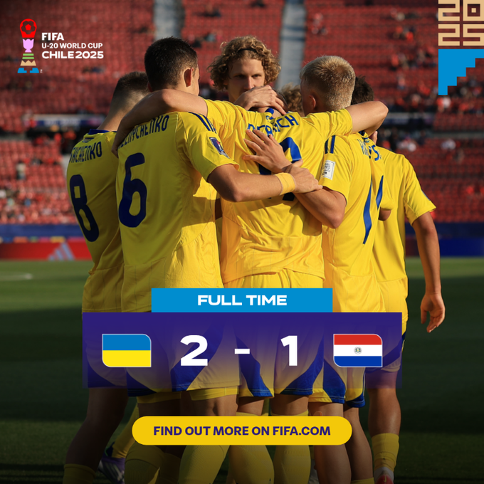 Сборная Украины U-20 вышла в 1/8 финала молодежного чемпионата мира 2025, который продолжается в Чили.