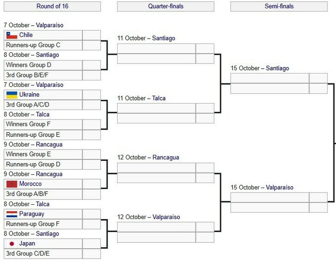 Участники 1/8 финала: Украина, Парагвай, Япония, Чили, Марокко, Аргентина, США