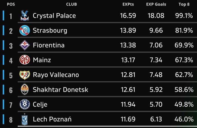 Главным фаворитом турнира остался представитель Английской Премьер-лиги – специалисты ожидают, что «Кристал Пэлас» займет первой место турнирной таблице. На второй позиции разместится французский «Страсбург», а тройку сильнейших замкнет итальянская «Фиорентина».
