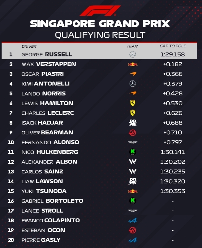 Невероятный круг Мерседеса. Состоялась квалификация Гран-при Сингапура