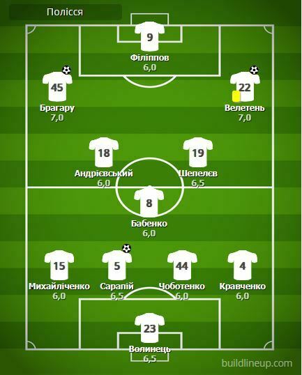 Заміни «Полісся»: Гуцуляк – 6,0; Таллес – 6,5; Борел – 6,0; Назаренко – 6,0; Гайдучик