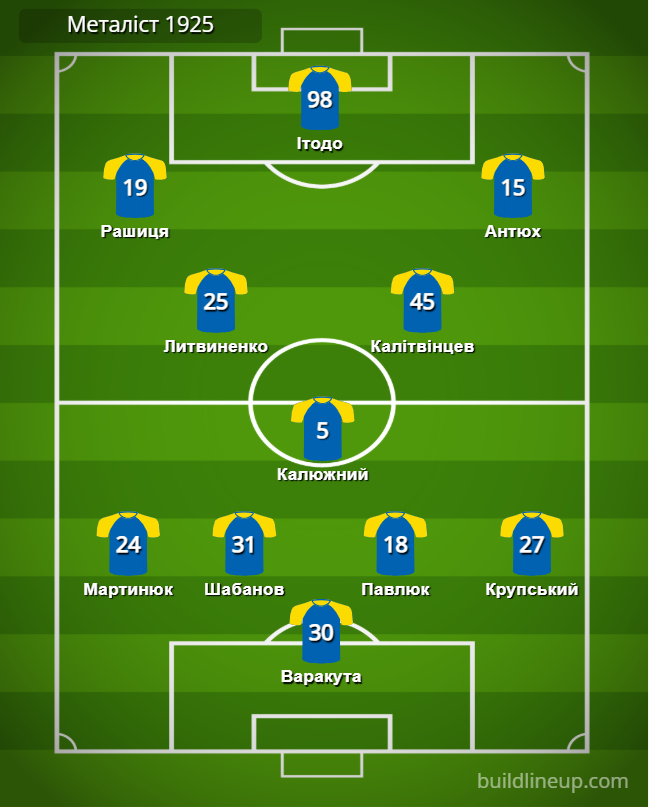 «Металлист 1925»: Варакута – Мартынюк (Капинус, 75), Шабанов, Павлюк, Крупский – Литвиненко (Чурко, 90+1), Калюжный, Калитвинцев – Рашица (Когут, 83), Петер (Мба, 75), Антюх (Салюк, 90+2).