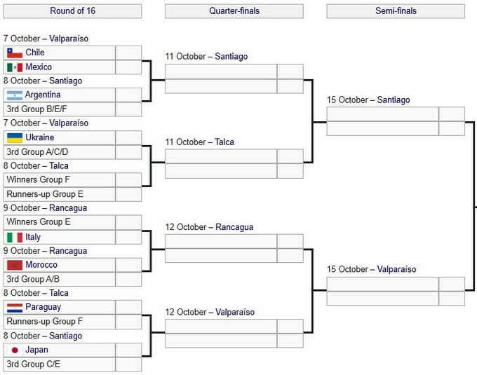 В ночь с 5 на 6 октября состоятся решающие матчи в группах E и F, которые полностью определят сетку плей-офф. Пока известна только одна пара 1/8 финала: Чили – Мексика.