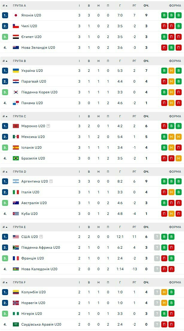 Таблицы ЧМ U-20. Фиаско Бразилии. Кто станет соперником Украины U-20?