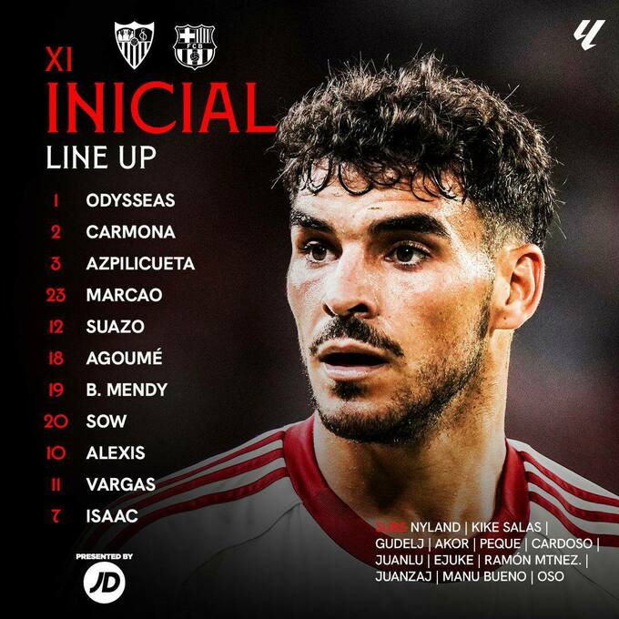 Стали известны стартовые составы Севильи и Барселоны на матч Ла Лиги