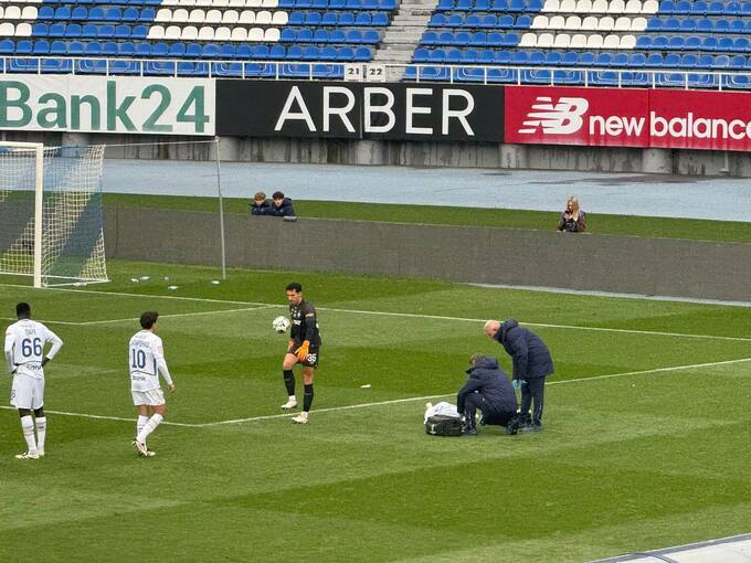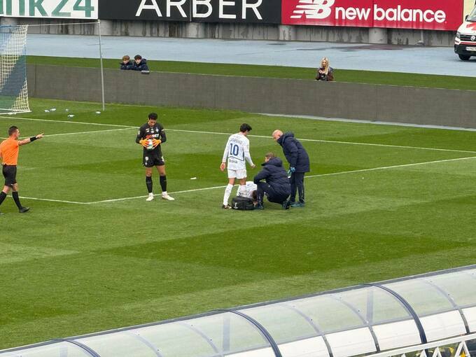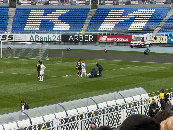 Судья из-за громкого крика защитника остановил матч, на поле в секунду появились клубные врачи.