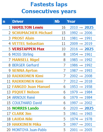 Семикратный чемпион установил рекорд по количеству сезонов подряд с самым быстрым кругом на этапах