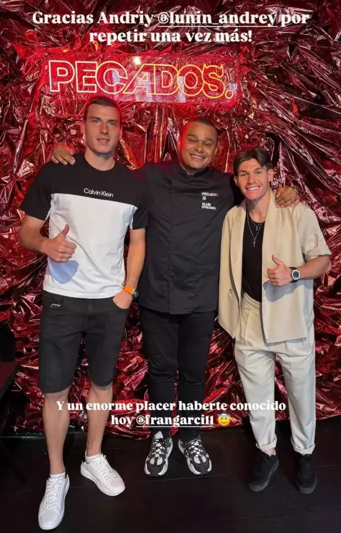 Компанию украинскому голкиперу составил левый защитник «королевского клуба» Фран Гарсия, соответствующее фото было обнародовано в социальных сетях обоих игроков.