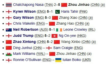 Игра идет до 5 побед во фреймах (максимум – 9 партий). Победитель матча выйдет в 1/32 финала, где соперником будет Яо Пенчен из Китая.