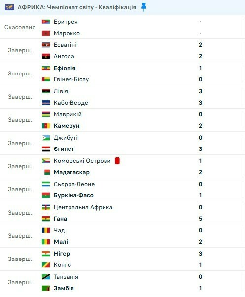 Сборная Ганы на выезде разгромила команду ЦАР (5:0) и на 99,9% получит путевку на ЧМ-2026. Голы забили Мохаммед Салису (21 мин), Томас Партей (52 мин), Александер Джику (69 мин), Джордан Айю (71 мин), Камалдин Сулемана (87 мин).