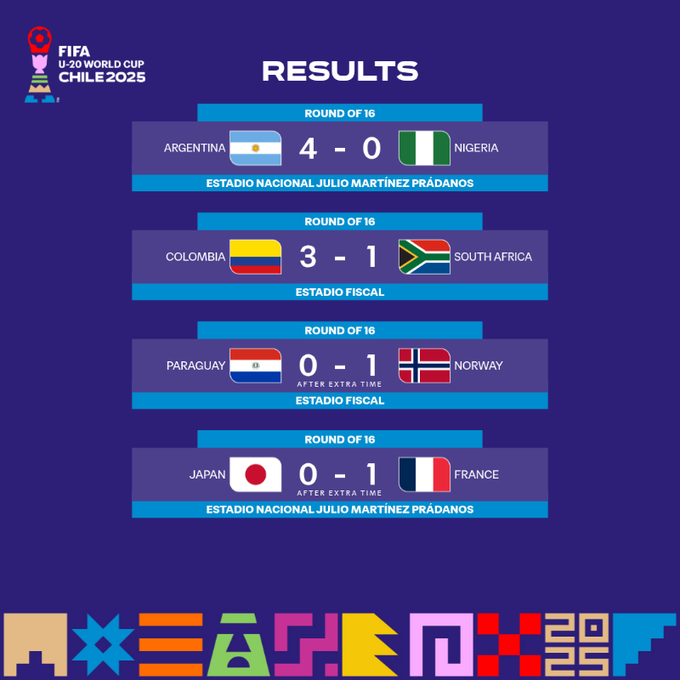 Образовались три пары 1/4 финала: Мексика – Аргентина (11 октября в Сантьяго), Испания – Колумбия (11 октября в Тальке), Норвегия – Франция (12 октября в Вальпараисо).