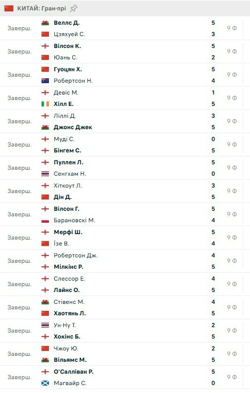 9 октября состоялись матчи 1/16 финала снукерного турнира 2025 Xi'an Grand Prix.