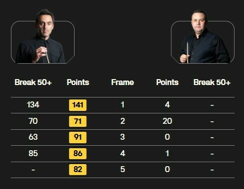Ронни О'Салливан (Англия) – Стивен Магуайр (Шотландия) – 5:0