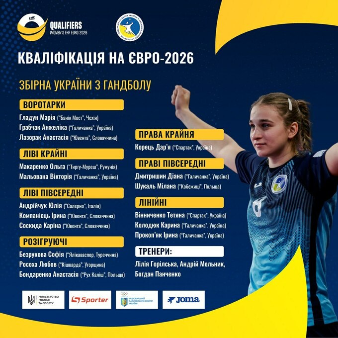 Женская сборная Украины по гандболу готовится к старту отборочного турнира на Евро-2026. Тренерский штаб назвал состав на матчи первого и второго тура.