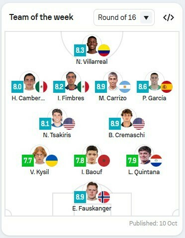 Символическая сборная 1/8 финала ЧМ-2025 U-20 по версии SofaScore