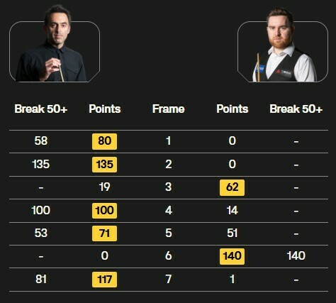 Ранее Ронни убедительно разгромил украинца Юлиана Бойко (5:0), Яо Пенчена из Китая (5:1) и Стивена Магуайра (5:0). Выиграв в турнире 20 фреймов, 7-кратный чемпионат мира проиграл пока что лишь 3 партии суммарно.