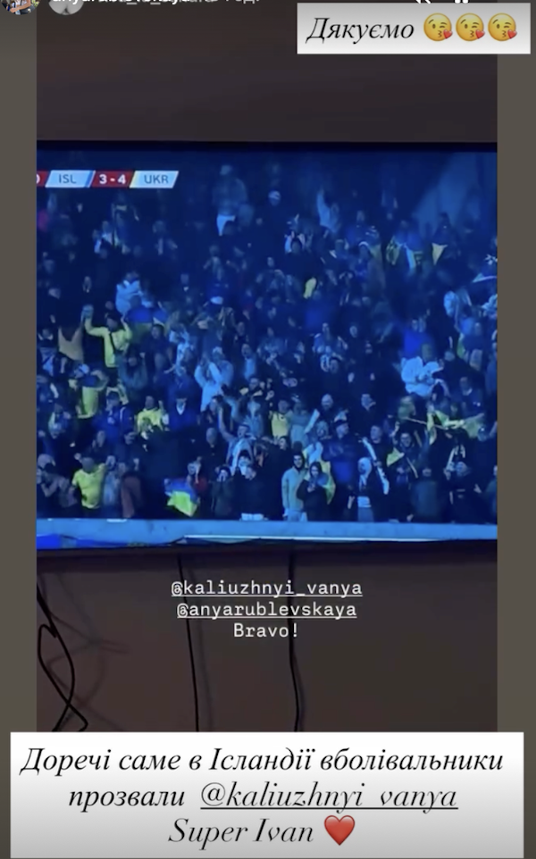 «Поздравляю, любимый! Как я хотела, чтобы ты забил. Браво, команда! Без света, без нормального интернета, на телефоне как-то мы смотрели этот матч, но как я верила в тебя – наш лучший. Кстати, именно в Исландии болельщики прозвали Ивана – Супер Иван», – написала Анна в Инстаграме.