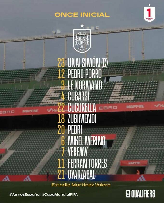 Луис де ла Фуэнте и Вилли Саньоль объявили стартовые составы на матч квалификации чемпионата мира 2026 Испания – Грузия.