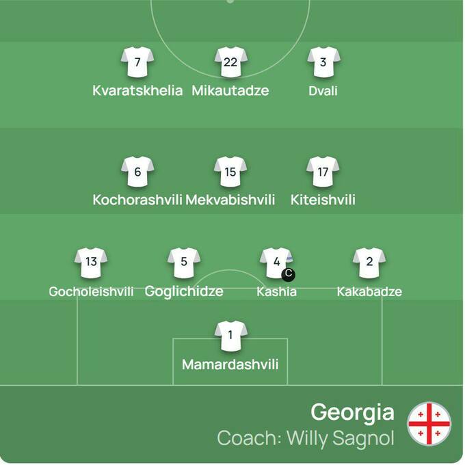 В нападении испанцев сыграют Ферран Торрес, Ереми Пино и Микель Оярсабаль. У Сакартвело в атаке выйдут Хвича Кварацхелия, Лаша Двали и Жорж Микаутадзе.