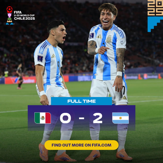 Сборная Аргентины U-20 стала вторым полуфиналистом молодежного чемпионата мира 2025.