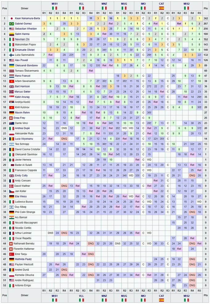 В целом украинец набрал 89 очков в абсолютном зачете и занял 10-е место среди 52 гонщиков. В классе новичков пилот академии Уильямс стал третьим из 27 участников, уступив только Салиму Ханне и Чи Ньюману. Это уже самый успешный сезон для украинцев в чемпионатах Формулы такого уровня.