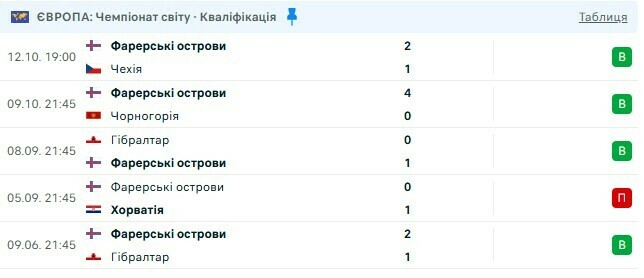 Последние 5 матчей Фарерских островов в квалификации ЧМ-2026