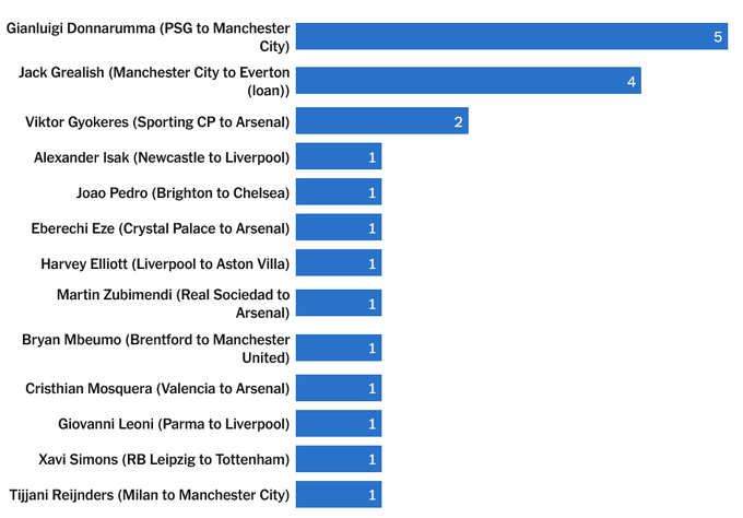 На первое место в опросе вышел переход вратаря Джанлуиджи Доннаруммы из ПСЖ в Манчестер Сити. Отмечается, что клуб заполучил топ-игрока за относительно небольшие деньги (около 30 миллионов евро), а Доннарумма уже стал основным и выдал несколько классных матчей.