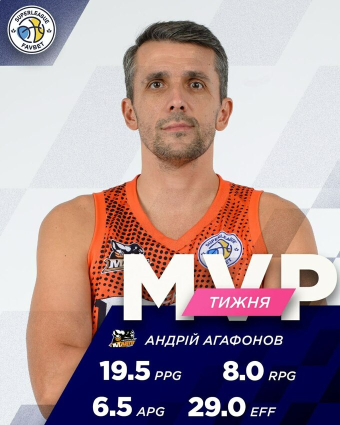 MVP второй недели признан центровой «Черкасских Мавп» Андрей Агафонов, который помог своей команде одержать две победы в Николаеве.