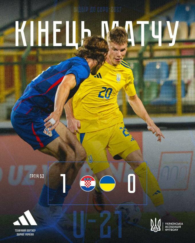 Сине-желтые на выезде проиграли команде Хорватии U-21 со счетом 0:1