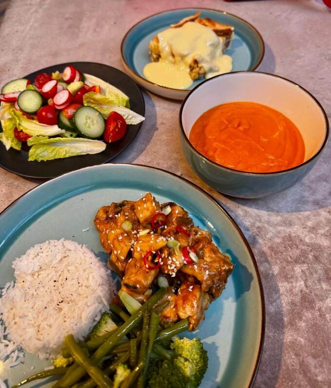 Ее ужины состоят из трех частей: суп из восьми овощей; говядина с рисом и брокколи; десерт – пирог Bakewell или рисовый пудинг перед матчем.