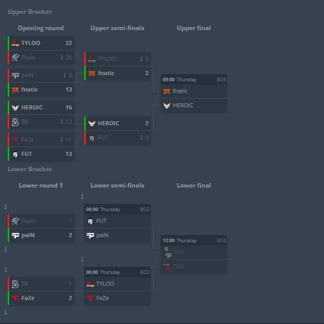 Теперь fnatic встретятся с HEROIC в верхнем финале группы. Обе команды уже гарантировали себе выход в плей-офф, однако победитель этого матча начнет с полуфинала, а проигравший – с четвертьфинала.