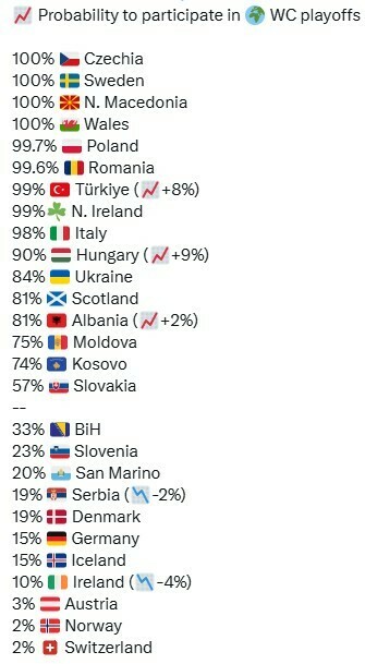 Вероятность плей-офф ЧМ для команд из Лиги наций
