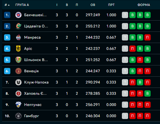 Еврокубок. Регулярный сезон. 3 тур, 15 октября 2025