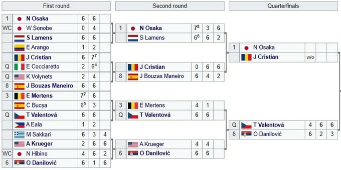 - Жаклин Кристиан (Румыния) – Наоми Осака (Япония) [1] – w/o