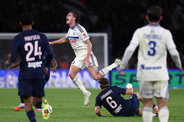 Уже на 6-й минуте Бредли Баркола открыл счет для ПСЖ (1:0), но гости вскоре ответили двумя голами. Хоакин Паничелли сравнял на 26-й минуте, а Диегу Морейра вывел Страсбург вперед до перерыва (2:1).