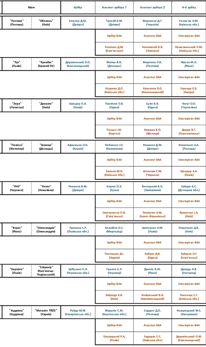 УПЛ. 9-й тур. Судейские назначения