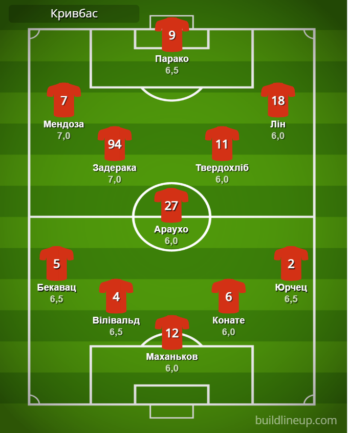 «Кривбасс»: Маханьков – Бекавац, Виливальд, Конате, Юрчец – Задерака, Араухо, Твердохлеб – Мендоза, Парако (Дибанго, 79), Лин (Я. Шевченко, 79).