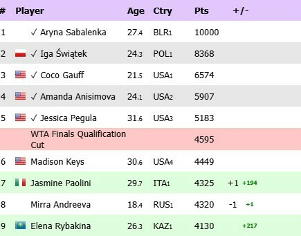 Уже известны 7 из 8 участниц ноябрьского WTA Finals в Саудовской Аравии