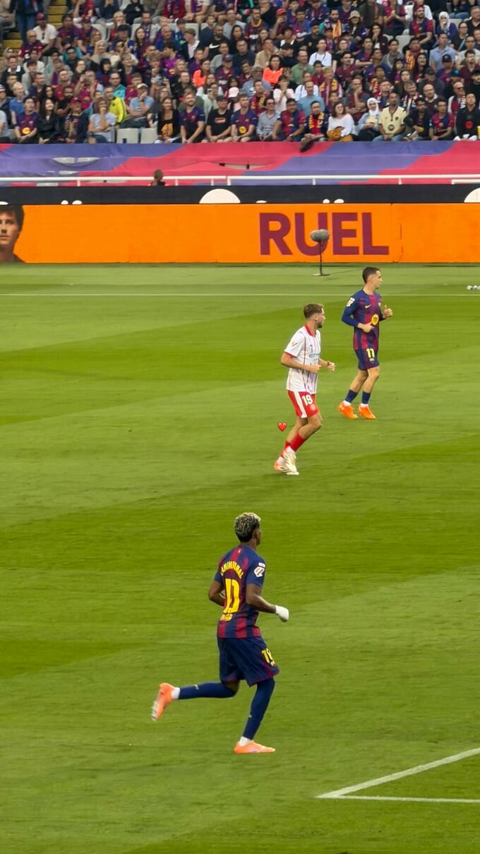 На снимке Милана запечатлела момент, когда ее возлюбленный оказался в объективе камеры прямо в одном кадре с юным талантом каталонцев Ламином Ямалем.