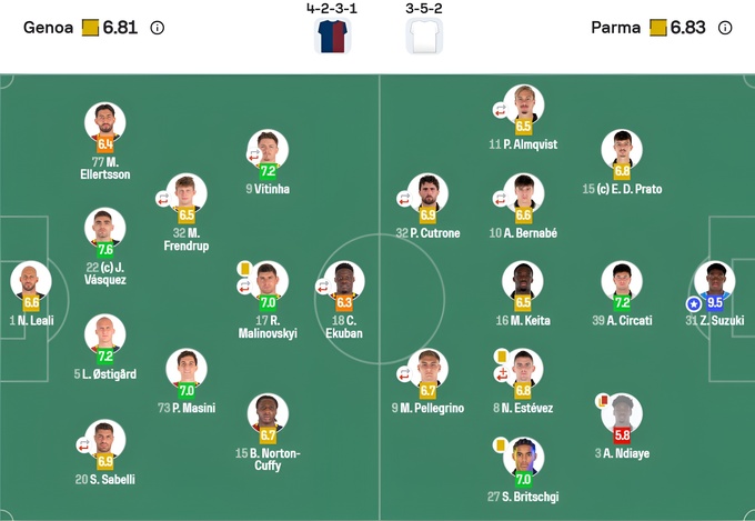 Оценки матча «Дженоа» – «Парма» от SofaScore