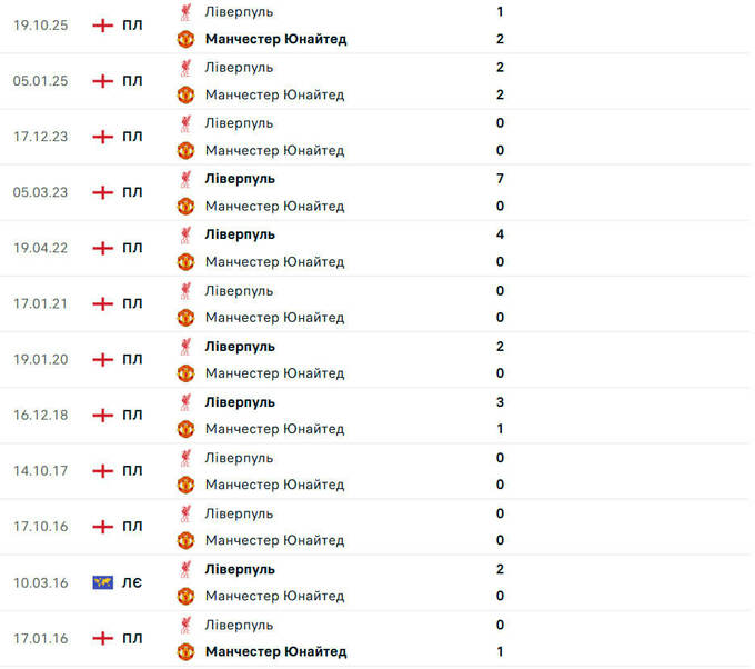 Последние матчи «Ливерпуля» и «Манчестер Юнайтед» на стадионе «Энфилд»: