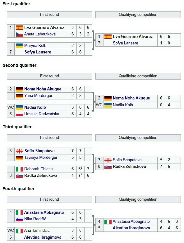 Этап квалификации на турнир не прошли сестры Надежда и Марина Колб. Первой удалось пройти первый раунд, одолев Уршулу Радванскую из Польши, после чего в финале она уступила Нома Нохе Акуге из Германии.
