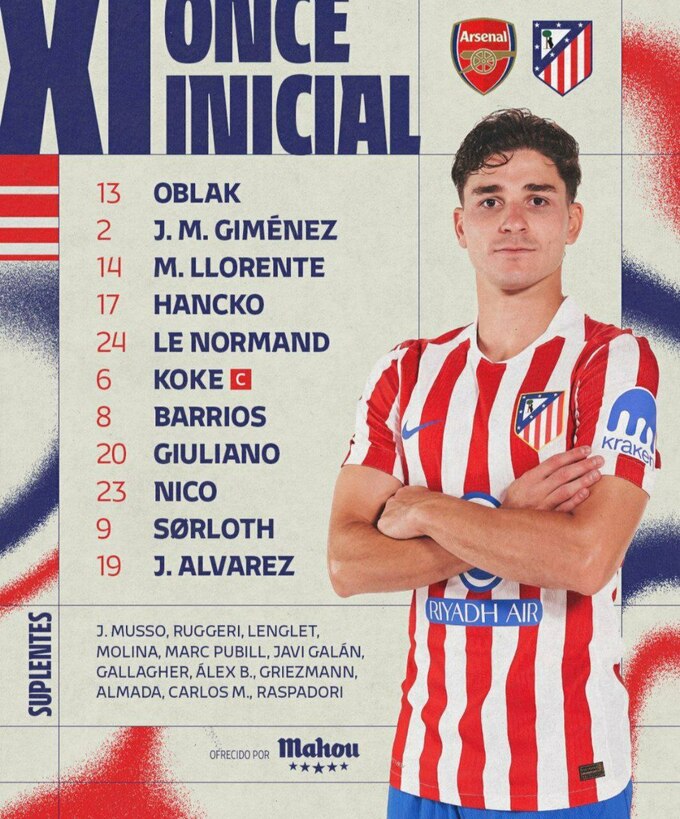 «Атлетико»: Облак, Льоренте, Ле Норман, Хименес, Коке, Ганцко, Альварес, Барриос, Симеоне, Гонсалес, Сёрлот.
