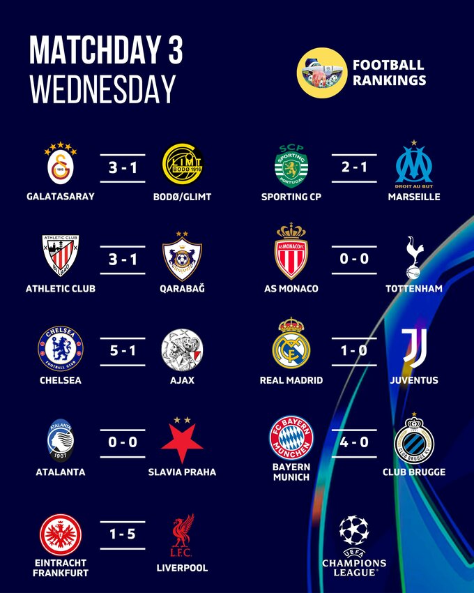 Вечером 22 октября состоялись матчи 3-го тура Лиги чемпионов УЕФА 2025/26.