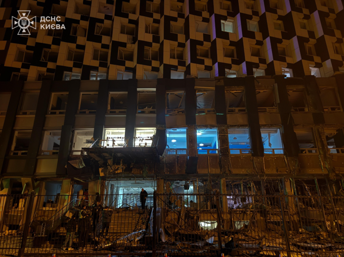 По информации КГВА, под обстрел попали гражданские объекты в Подольском, Оболонском и Деснянском районах. От обломков серьезно пострадал фасад здания, выбиты десятки окон. К счастью, в момент атаки в помещении не было сотрудников, поэтому никто не пострадал.