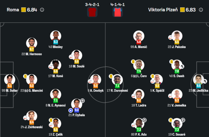 Артем Довбик провел на поле 74 минуты, результативными действиями не отличился. Статистические порталы SofaScore и WhoScored оценили игру украинца в 6.0 и 6.5 баллов соответственно.