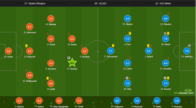 Лучшим по версии обоих порталов стал аргентинский нападающий хозяев поля Пауло Дибала. на его счету один гол и оценку 9.0 и 8.4 соответственно.