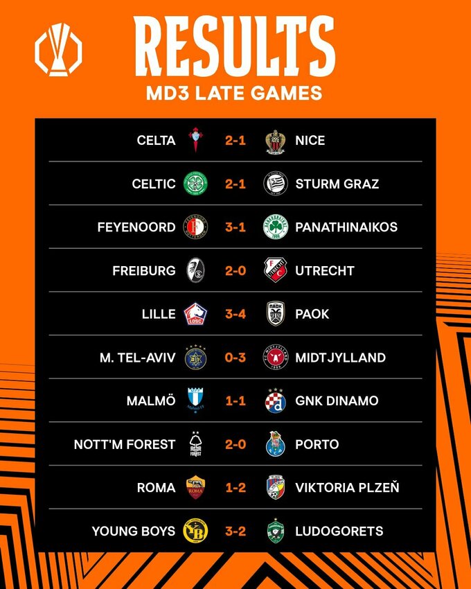 Вечером 23 октября прошли матчи 3-го тура Лиги Европы УЕФА 2025/26.