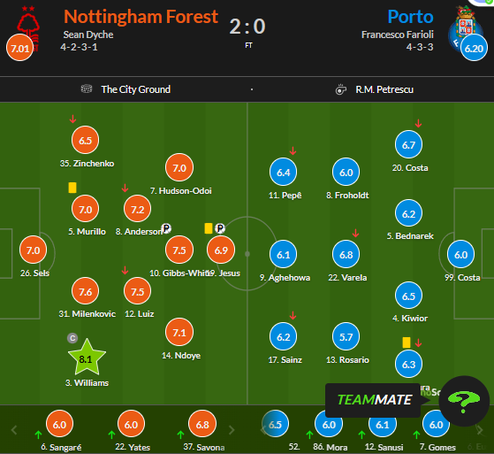 Оценки WhoScored за матч Ноттингем Форест – Порту (2:0)