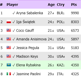 Рыбакина существенно отставала от Андреевой, но благодаря трофею на пятисотнике в Нинбо на прошлой неделе и двум победам в Токио все же опередила «нейтралку».